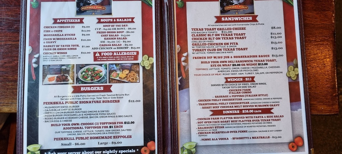 Welcome to Peekskill Public Bar & Grill, an inviting culinary gem nestled in the heart of Peekskill, NY. Located at 362 Washington St, this local favorite offers a delightful menu brimming with homemade comfort food. Guests rave about the five-dollar pizza, celebrated for its light, crispy crust and cheesy goodness, and the renowned chicken Parmesan made with summer's freshest tomatoes.